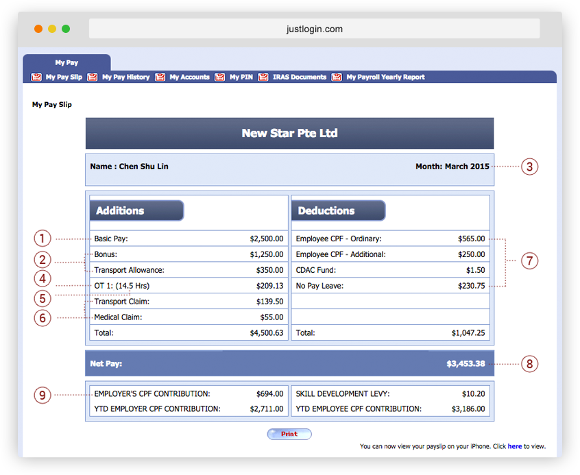 You can issue the payslip either as a hardcopy or a softcopy, as long as it contains the breakdown. Softcopies that can be accessed via a web portal or mobile phone, by both you and your employees will ensure transparency for both parties.